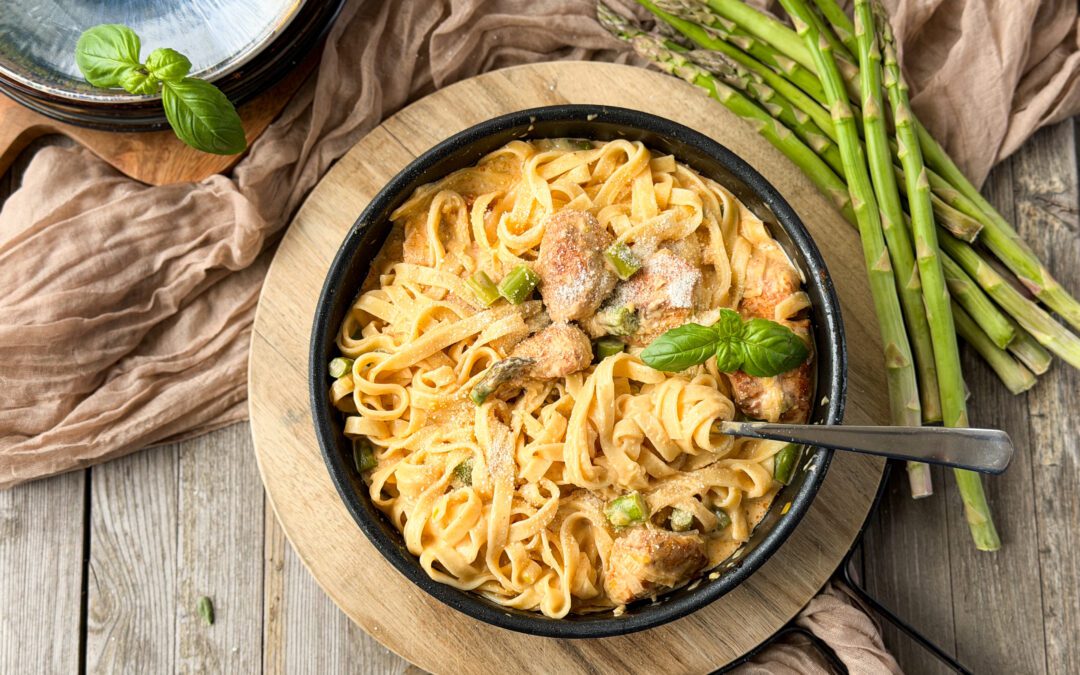 Sezonowy obiad, który łączy w sobie prostotę, świeżość i naprawdę świetny smak. Kremowy kurczak ze szparagami i porem to idealna propozycja na wiosnę – delikatny, aromatyczny i tak prosty w przygotowaniu, że robi się niemal sam.